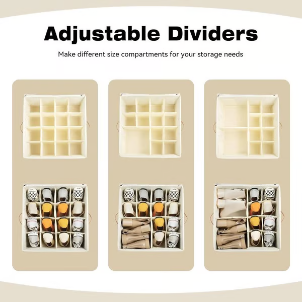 SCOMPARTI REGOLABILI: l'esclusivo sistema di incastro delle scatole per scarpe consente un facile assemblaggio e soluzioni di archiviazione personalizzate. I divisori dell'organizer per scarpe possono essere regolati in base alla misura delle scarpe, garantendo a ogni paio uno spazio dedicato e ottimizzando lo spazio nell'armadio.