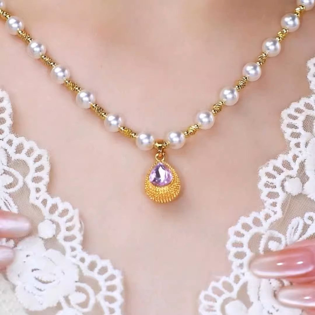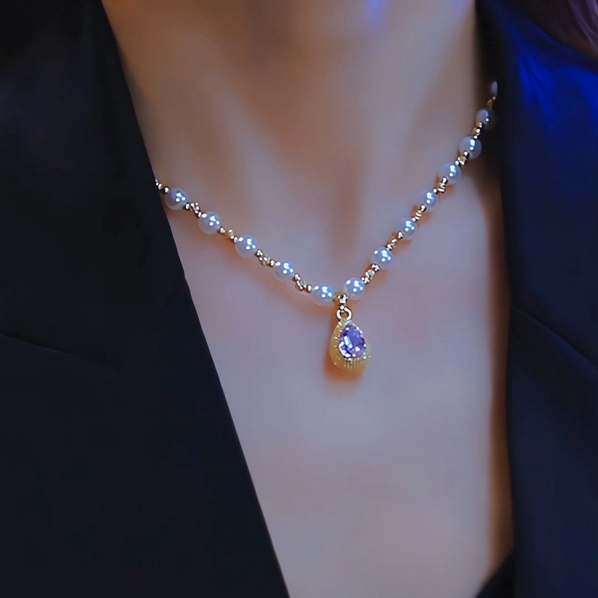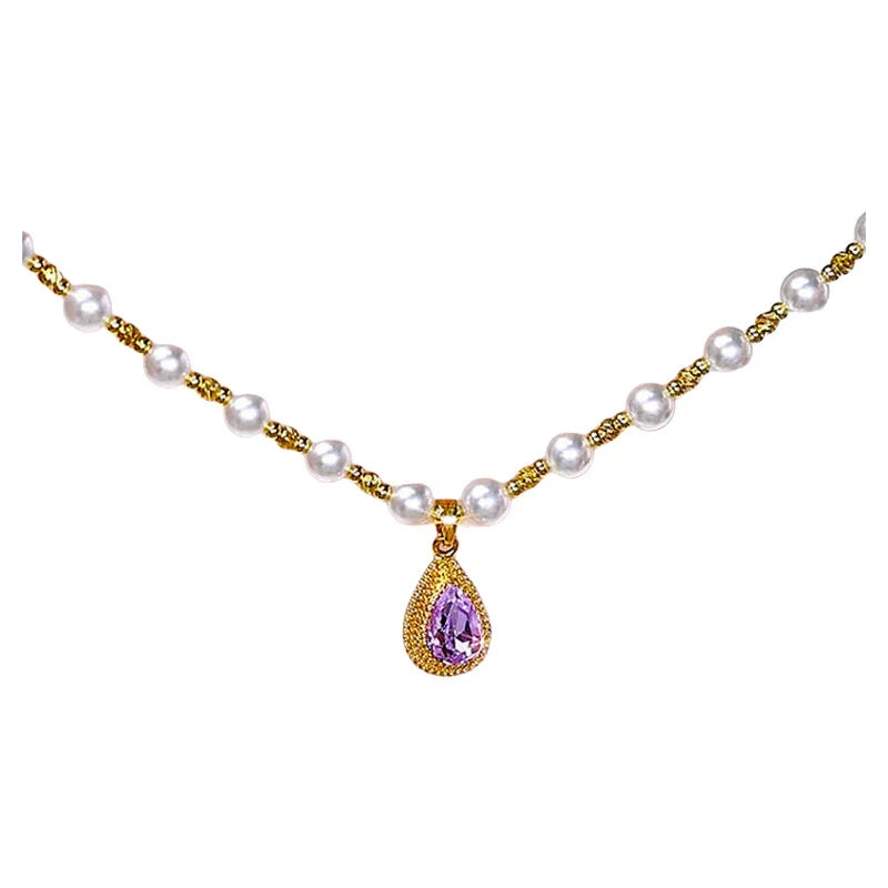 Collana da donna con perle di durian viola a goccia in stile francese - Design minimalista e lussuoso