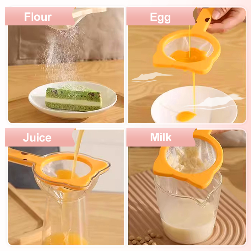 DETACHABLE EASY-CLEAN MESH: The strainer’s mesh is removable for easy cleaning and replacement, suitable for sifting flour, juice, milk residue, sauces, or other cooking liquids.
