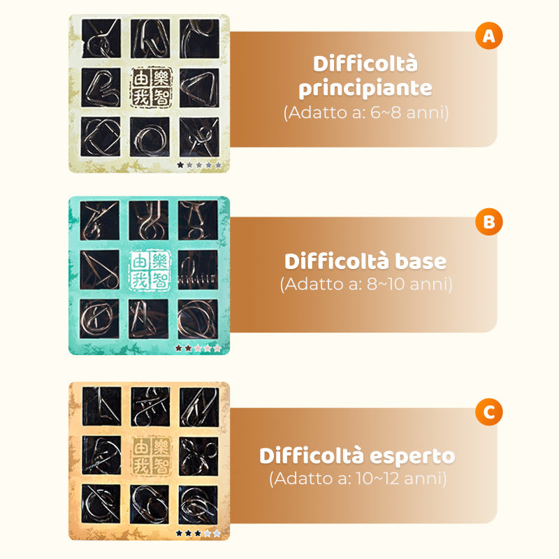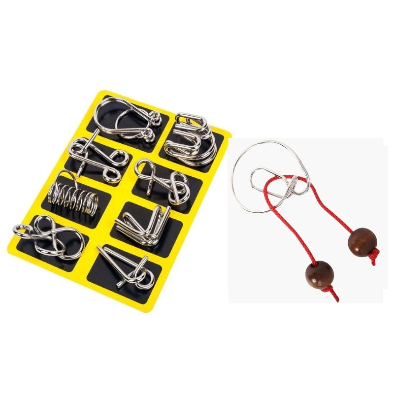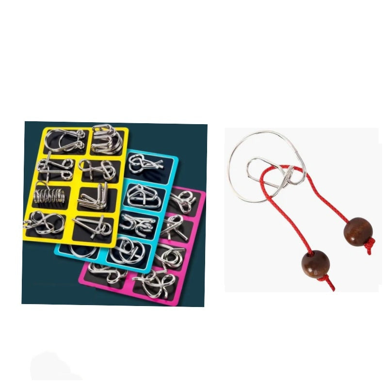 Anello puzzle in metallo da otto pezzi versione blu rompicapo